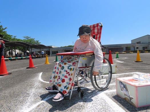 グラウンドは舗装されていますが、室内と違いちょっとした溝や段などもあり、皆さん普段以上に走行は困難そうでしたが、車椅子を上手に乗りこなしていました。