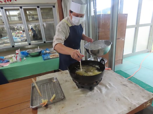 日清医療食品の協力のもと天ぷらの実演料理を行いました。