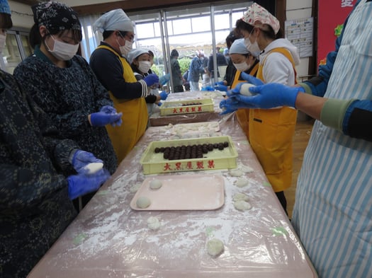 〈あん餅も作ります〉 〈食事形態別に分けて安全に食べていただきます〉