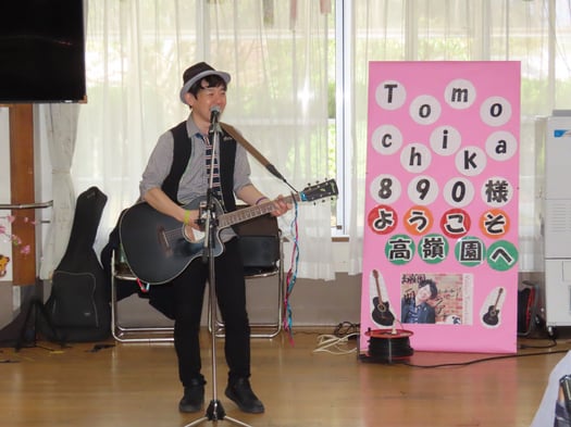 ともちか890(やっくん)さんは、東日本大震災の被災地のライブを経て、全国47都道府県の福祉施設、学校、幼稚園などを訪れて、笑顔ライブを開催してます。